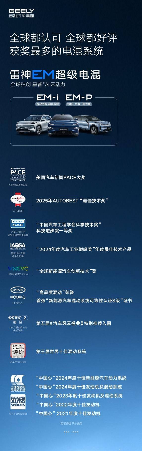 吉利雷神电混系统的成就斐然,不仅在国内市场屡获殊荣,更在北美市场夺得被誉为“汽车界奥斯卡”的PACE大奖,正式迈入全球混动技术顶尖行列。这一系列荣誉,如同为其技术皇冠镶嵌上璀璨宝石,彰显其卓越实力。